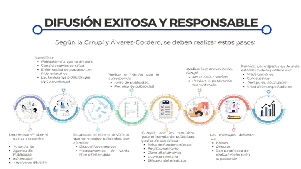Las redes sociales influyen en la compra de productos o uso de servicios en la población, tal es el caso en los temas de salud por lo que, la Comisión Federal para la Protección contra Riesgos Sanitarios (COFEPRIS) lanzó la Grrupi, una guía para publicidad responsable, evitando la difusión de información engañosa, por lo que esta publicidad debe ser analizada por la Secretaria de Salud, para ser una herramienta para realizar una difusión sanitaria adecuada y con ello cumplir con el Reglamento de la Ley General de Salud en Materia de Publicidad.